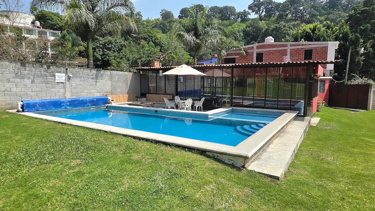 Siyakwamukela! Endaweni yethu uzothola indawo ekhululekile, ethokomele futhi egcwele imvelo kodwa ene-inthanethi ye-Starlink, eqhele ngemizuzu engu-5 ukusuka e-Centro Asturiano Cuautla, eqhele ngehora elilodwa ukusuka e-Volcán Popocatépetl, eqhele ngemizuzu engu-25 ukusuka e-Cuautla, eqhele ngemizuzu engu-30 ukusuka e-Cocoyoc. Le ndawo icatshangwa kakhulu ngokubungaza izindawo zokuvakasha, imikhosi namaqembu afuna ukuhlala ethintana nemvelo.