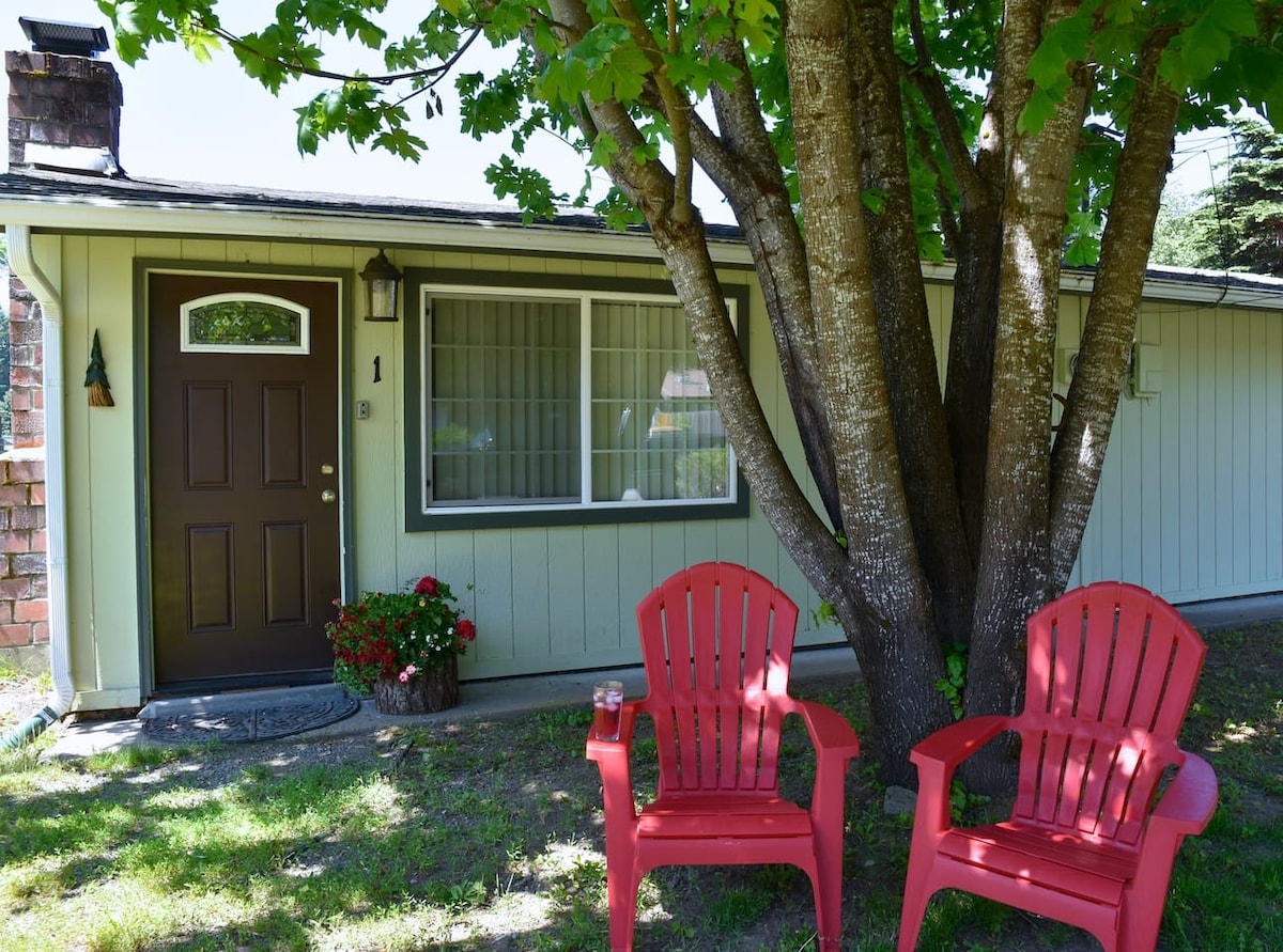Ngenani elifanayo nehhotela lendawo, le ndlu encane, ibuyele emuva ku-quater acre yangasese e-Packwood ingaba ngeyakho. Kuzungezwe ukuzijabulisa okungapheli, phuma uhlole noma uhlale endaweni. Konke ukunethezeka kwekhaya endaweni ethokomele. I-Wifi, i-Queen bed ku-loft, igumbi lokugezela elinosayizi ophelele eline-shower namanzi ashisayo adingekayo. Jabulela i-firepit ne-grill ye-propane. Indawo yetende futhi ngemali encane eyengeziwe. Eduze ne-Mt. Rainier, i-White Pass Ski Area, Mt. Adams and Mt. St. Helens. Futhi pet friendly! 2 inja ubuningi.