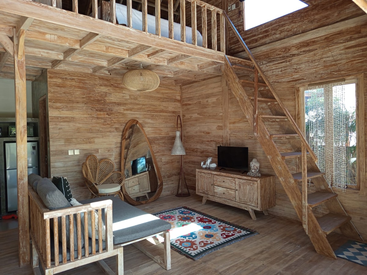 I-villa enhle enekamelo lokulala le-loft namasevisi aphelele. Igumbi lokuphumula eline-TV, i-AC, I-WIFI yamahhala, ikhishi elinezinto ezidingekayo, ifriji, amanzi ashisayo, uvulande wamapulangwe, indawo yokubhukuda ebheke ihlathi elinokuthula endaweni yase-Padang-Padang e-Uluwatu. indawo yokupaka yamahhala nendawo yokubeka i-surfboard. Imizuzu engu-5 ukuya ebhishi lase-Padang-Padang nemizuzu engu-10 ukuya ebhishi lase-Uluwatu. Ifanele abantu abashadile, i-digital nomad, isihambi esisheshayo. IYATHOLAKALA NGENANI ELIPHANSI NJENGOBA UKWAKHIWA KWANGAPHANDLE KUSAQEDWA.