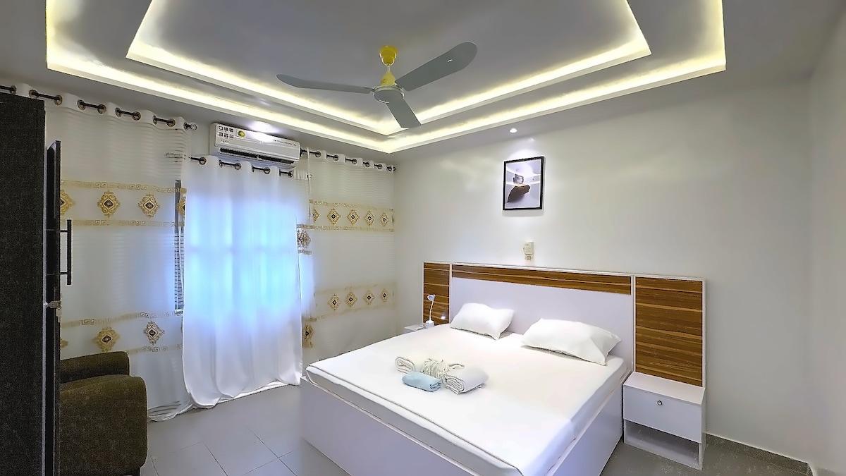 Njengoba isesigodini esisha seBethel Estate se-GCITT Calavi, ngaphesheya kwamayunithi ezindlu zomphakathi amasha angu-20,000 e-Ouedo Estate (asakhiwayo), le villa iseduze nechibi lezivakashi lase-Ganvié ne-Agoualand Zoo Le ndawo yokuhlala eyiphrayivethi ngokuphelele ilungele amaholide omndeni, ukuhlala kwamaqembu, noma ukuvakasha nabangane. Izinto ezidingekayo Indawo yokubhukuda, I-Jacuzzi, I-Air conditioning, Amafeni asophahleni, I-Wi-Fi, Iziteshi ze-TV ziyatholakala, Amakhamera onogada angaphandle Phawula: Izindleko zokugcwalisa imitha kagesi ziwumthwalo wezivakashi.