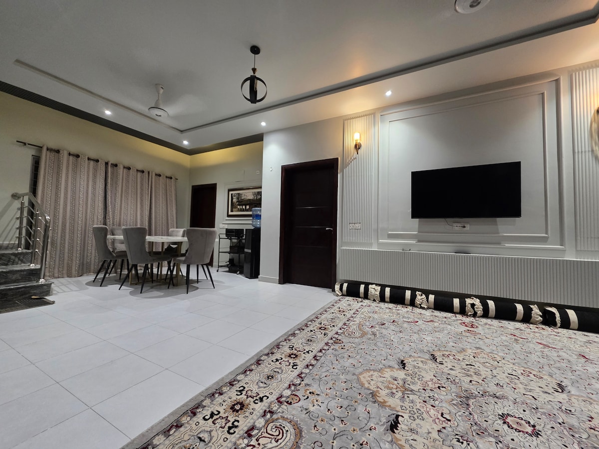 Jabulela ukuhlala okunokuthula nokuvikelekile efulethini lethu elihle e-Phase VIII, i-DHA Karachi, imizuzu engu-2 ukusuka olwandle nemizuzu engu-9 ukusuka e-Dolmen Mall nokudlela okusezingeni eliphezulu. Jabulela ukunakekelwa kokuhlanza kwamahhala kwansuku zonke nokunakekelwa kwendlu. Imoto nomshayeli & isevisi yokudla (ngemali eyengeziwe) iyatholakala ngesicelo. Izindawo zethu zokuhlala ezivulekile, ikhishi lesimanje, namakamelo okulala aklanywe kahle anamagumbi okugezela ane-generator engemuva aqinisekisa ukuhlala okungenakulibaleka. Ilungele imindeni nezihambi zebhizinisi, inikeza i-Wi-Fi enejubane eliphezulu.