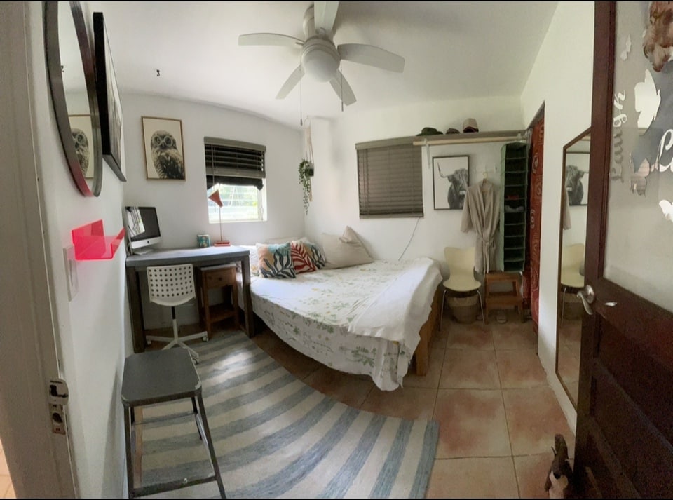 I-Luxury Private Studio w/ Private Entrance (i-440 sq ft- ingafanelana nabantu abangu-3/izimoto ezingu-2) sinamathiselwe ekhaya lethu & amamayela angu-1.7 ukusuka ebhishi & eduze ne-Ft Lauderdale. Paka ngaphansi kwe-carport evikelwe. 1 Queen Bed (& 1 Queen Size-Blow Up Mattress), 1 Bath, Kitchenette, Fiber Optic Wifi, Flat Screen TV (140 channels), Impact Windows, Huge Closet, Fan/light, AC w/ remote, Desk, Chair, fold up/down Table for eat w/chair, small Fridge, Microwave, Toaster Oven, Foreman Grill, Hot Plate Stove, Coffee Maker.