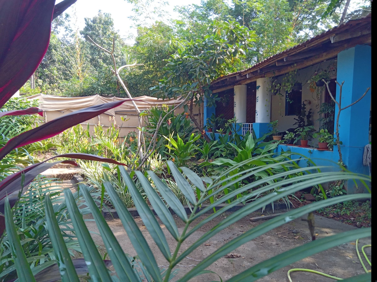 Forget your worries in this serene space in a quite village. Surrounded by river and coconut trees you can relax in this spacious private house and garden while being in walking distance of the famous vibrant south goa beach full of restaurants and local shops. Central to exploring the beauty of south goa you can return to your own private space to unwind from your day or have a day off enjoying the patio and garden, watching the wildlife or having a BBQ. There is full A/C, WiFi and powerback up