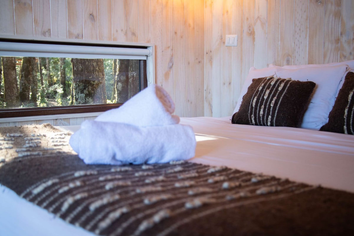 Phumula kule ndawo yokuvakasha eyingqayizivele nethule, indlu eyakhiwe ngamapulangwe ifakwa ehlathini lomdabu lapho uzohlala uzwa khona izinyoni zicula nomsindo wezihlahla oshukunyiswa umoya. Amakhilomitha angu-5 ukusuka emzaneni wase-Panguipulli kanye namakhilomitha angu-7 ukusuka ebhishi uzoba nakho konke ngaphakathi kokufinyelela okulula, kodwa ngokuthula kwezindawo zasemaphandleni.!
