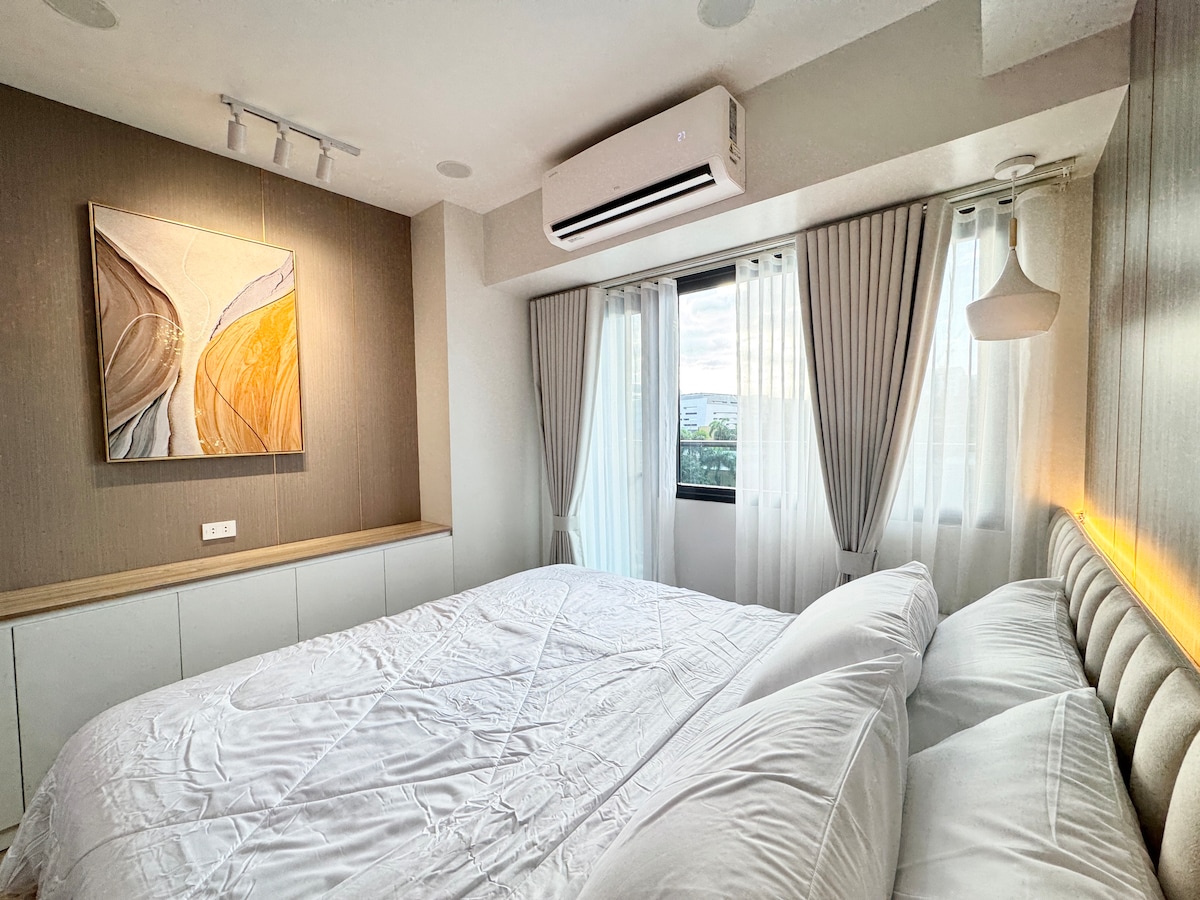 I-smart condo kanokusho ene-balcony ethokomele, izindawo zokubhukuda, i-WiFi yamahhala, i-Netflix, i-Xbox, umshini wokuhlanza umoya nokungena ngaphandle kwesikhiye. Ibanga lokuhamba ngezinyawo ukusuka enxanxatheleni yezitolo nemizuzu ukusuka esikhumulweni sezindiza. * Ukungena Okungenakho Ukhiye *I-Xbox *i-wifi engu-50Mbps *I-Netflix ne-YouTube *I-Smart HDR Internet engu-43 intshi ye-LED Sony TV ne-Sony Soundbar *Isikhulumi se-Bose *Umshini Wokuhlanza Umoya *2 hp inverter A/C *Ifeni Elisophahleni *I-double bed w/memory foam mattress & luxury linnen *I-Hot & Cold Drinking Water Dispenser *I-Hot Shower *Umshini Wokugeza *Qedela Ikhishi! *28.19 sqm