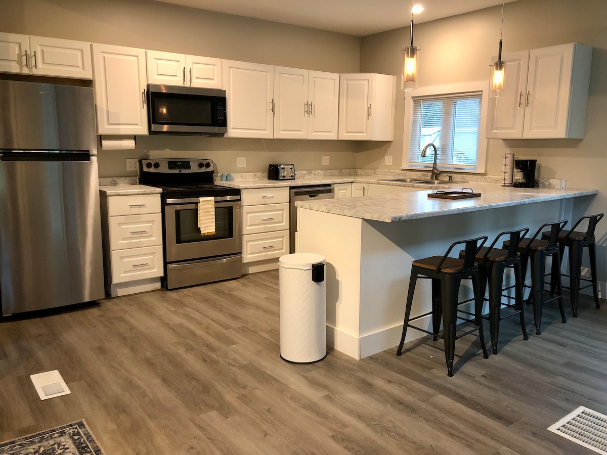 Jabulela ukufinyelela okuqondile ku-Newport/Dover-Foxcroft Rail Trail usuka egcekeni elingemuva. Hhayi umgibeli, jabulela umuzwa wendlwana onethezekile wekhaya lethu noma ungene ngaphansi kwemayela eliya edolobheni lethu elincane elithi “Heart of Maine”. Jabulela izitolo, izindawo zokudlela ezinhle nokufinyelela okusheshayo kwalabo abahamba ngesikebhe ekuqalisweni kwesikebhe somphakathi. Inamagumbi okulala amabili anemibhede emikhulu, siphinde sinikeze indawo eyengeziwe egumbini lokuphumula elinombhede wasemini & i-tundle. Leli khaya belinokushintshwa okuphelele ngo-2022-2023 futhi lisha sha!