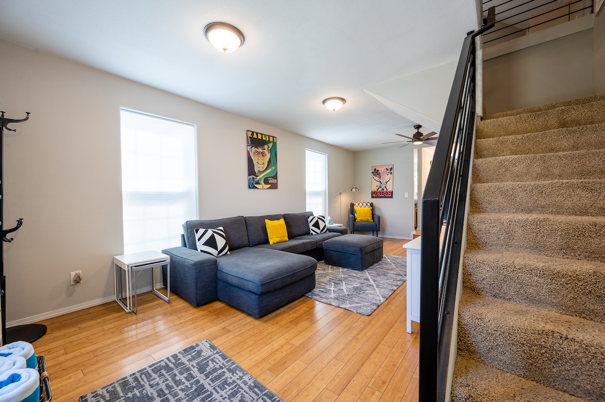Ikamelo lethu lokulala elilungiswe kahle elingu-2 (Kokubili phezulu) nezindlu zokugezela eziphelele ezingu-2 (Elinye esitezi esiphansi nelinye esitezi esiphezulu) kanye nosofa wokulala wendlovukazi ophansi kanye negumbi elihle eliphansi elinendawo yokudlela engu-7 kanye netafula le-bar elihlukanisa ikhishi negumbi lokuphumula lisendaweni ekahle kakhulu. Hamba ngezinyawo uye ebhishi, ezitolo, ezindaweni zokudlela, noma uhambe kahle ngasemfuleni. Sise-Capitola Village. Sithemba ukuthi uzokujabulela ukuhlala kwakho. Uma unemibuzo, siphendula ngokushesha.
