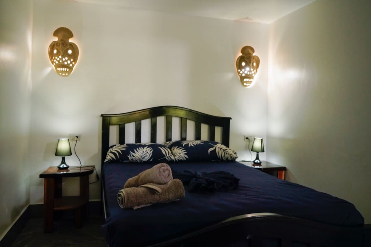 Concepto de casa abierta en 3 niveles. Disfrute de la vista y brisa del mar y muchas aves y monos. Arriba cama king y baño. En el primer nivel cocina equipada completa, sala de estar / terraza y baño con ducha y agua caliente. Sótano con dormitorio cama doble. Oficina (la cueva) con Internet fibra óptica para trabajar en linea, cama doble y Aire acondicionado. A solo 3 minutos a la playa. Perfecto para parejas y familias. No necesita 4x4