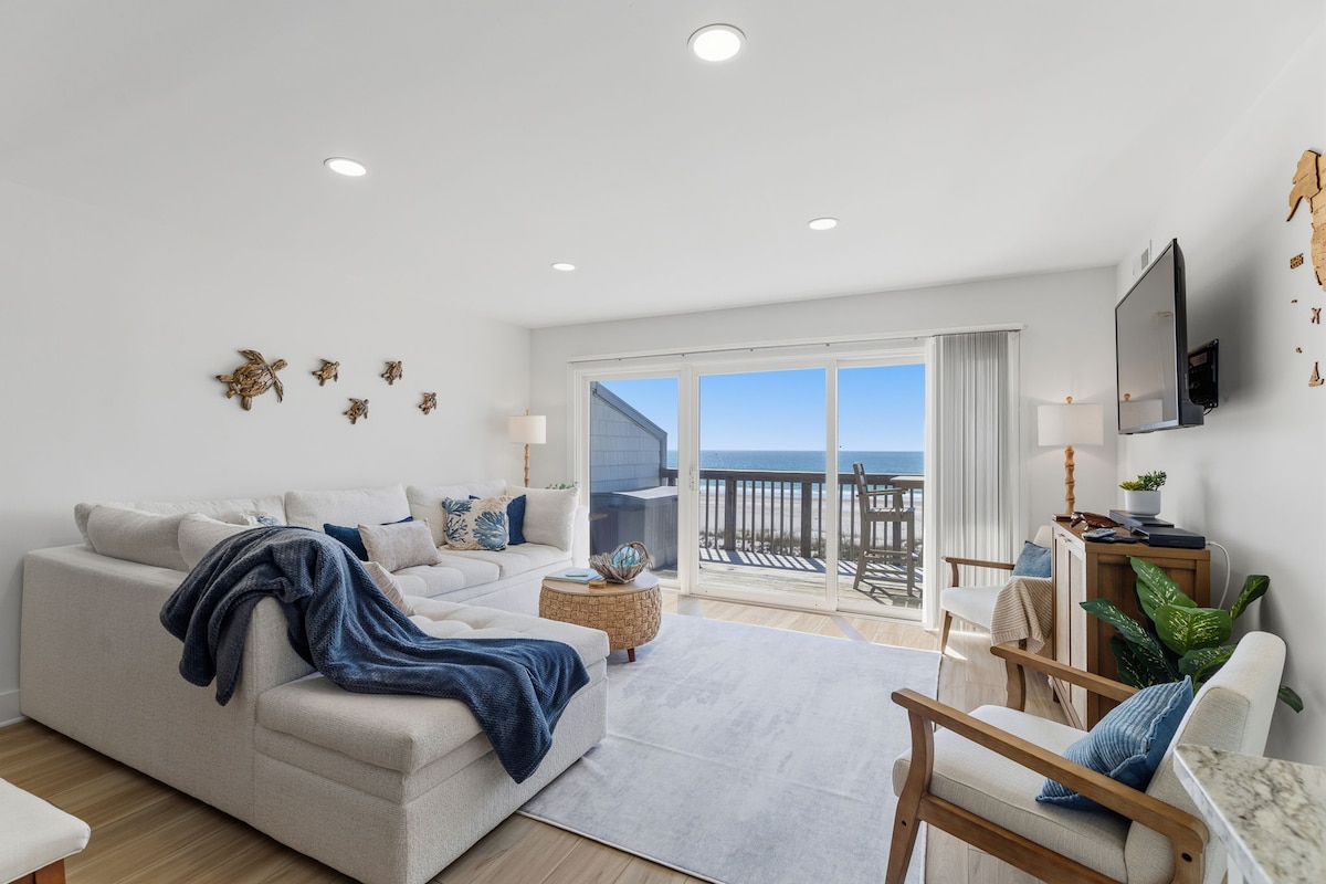 Woza uthole uLwandle lwakho lwe-Vitamin - ukukhanya kwelanga, umoya ohlanzekile, namanzi anosawoti! I-Oceanfront ebukekayo yombhede ongu-2 ifulethi lokugeza eliyi-1 elinendawo enhle ukusuka emphemeni wangasese nendawo yokuhamba eya ebhishi ngokuqondile. Ilungele abantu abashadile, imibhangqwana, noma imindeni emincane. Hamba uye ekudleni okungcono kakhulu nokuthenga e-Surf City. Konke kungakapheli imizuzu engu-5-10 uhamba ngezinyawo. Ukufinyelela kalula ebhulohweni elisha eliphezulu. Yonke i-Vinyl flooring. Wonke amalineni afakiwe. Kanye nephakheji yasendlini, amalahle ne-gas grill nokunye!