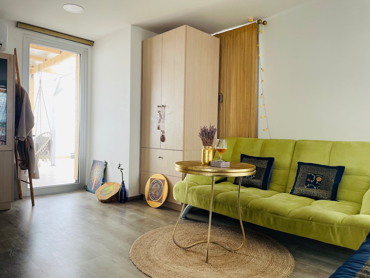 Ifulethi elinethezekile elinekamelo lokulala elingu-1 elinendawo yalo yokupaka. Ikhishi elivulekile elinekamelo lokuphumula elibhekene nefasitela elikhulu eliya engadini kanye ne-patio ohlangothini, elinikeza ukukhanya okwedlulele usuku lonke. Indawo eyingqayizivele, indawo enokuthula. Imizuzu engu-1 kuphela yokushayela ukuya enkundleni ye-GSP kanye nomzila wezimoto, nemizuzu engu-2 yokushayela ukuya e-Mall of Cyprus, i-General Hospital ne-Athalassa National Forest Park. Imizuzu engu-10 yokushayela ukuya eNyuvesi yase-Cyprus. Futhi, imizuzu engu-25 yokuhamba ngemoto ukuya esikhumulweni sezindiza sase-Larnaca nasebhishi.