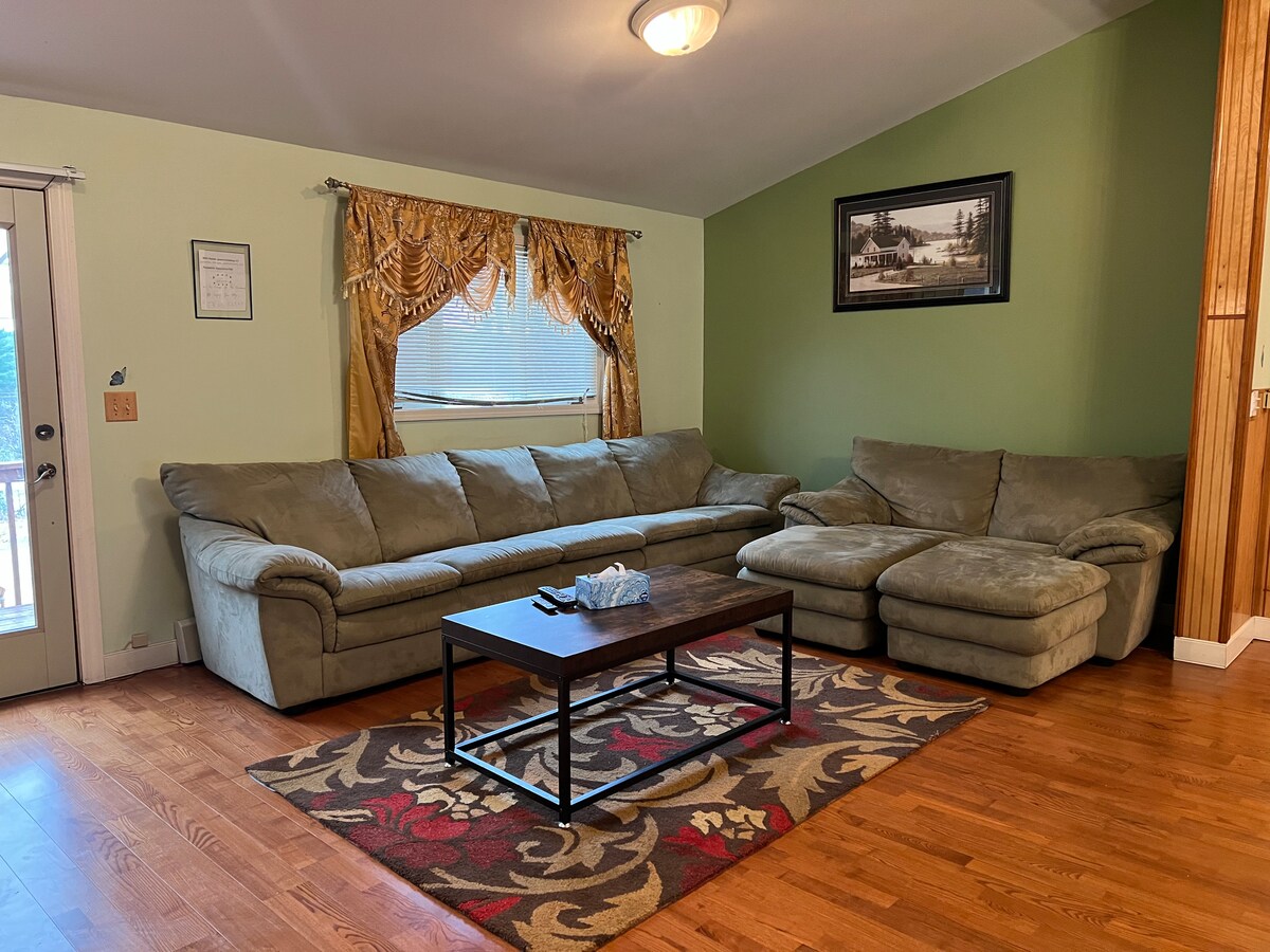 Phumula wedwa noma nomndeni wakho nabangane kule ndawo yokuhlala enokuthula. Ibanga lokuhamba ngezinyawo ukuya ezindaweni zokudlela ezisedolobheni, emanzini, nasendleleni yokuhamba ngezinyawo ngasechibini - nehora elilodwa ukusuka e-Burlington, e-Montreal, nase-Lake Placid. Ifulethi linamathele endlini yethu, ukuze sikusize nganoma iyiphi indlela. Ukukhubazeka kufinyeleleka nge-shower engenamkhawulo/akukho zitebhisi zokungena endlini. Indlu isemgwaqweni othulile- futhi amakamelo okulala anamakhethini amnyama ekamelo okusho ukuphumula okuhle ebusuku!