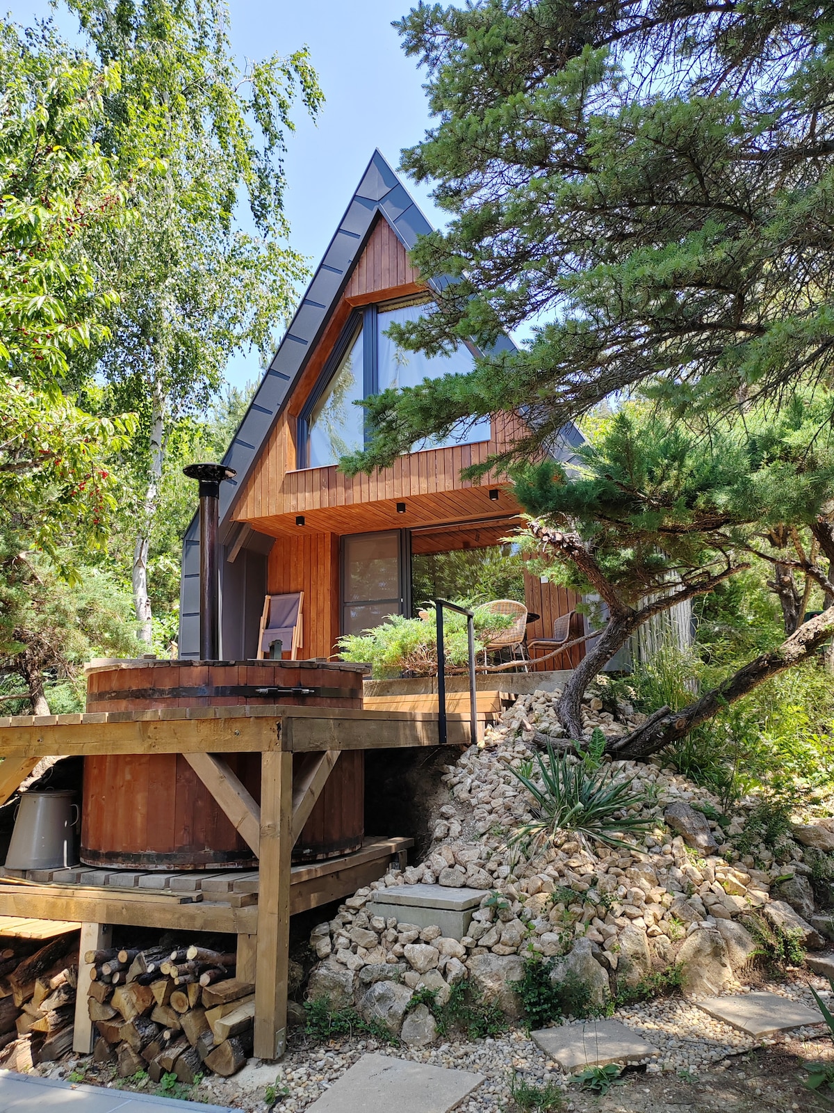 Fatüzelésű dézsával, teljesen felszerelt konyhával ellátott teljesen önálló szállás, csodálatos kilátással a Pilisi dombokra. Itt minden a pihenésről és a kikapcsolódásról szól. Pilisszántón, a Pilis hegyeinek lábánál, Budapesttől mindössze 40 percre található ez az eldugott menedék. A kabin kívül modern, belül klasszikus erdei faház stílusát idézi, a mai kor kényelmével. Tökéletes hely lerakni a városi stresszt és gyönyörködni a természetben.