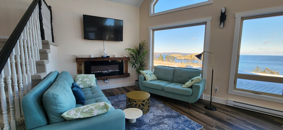 Konke Mayelana Nokubuka! Ama-Whales, Tuna, Dolphins, Eagles, Seals nezinye eziningi bezilokhu zibona kusuka emphemeni lapha e-Sandy Cove Chalet 's. Iphethwe ngu-75' ngaphezu kolwandle, uzobona sonke isenzo ku-Bay! I-Blue e-Sandy Cove Chalet iyindlu encane ethokomele eyakhiwe ngamapulangwe ethokomele wonke umuntu ethandana nayo ngokushesha! Ngegumbi lokulala le-loft ungabona ukukhanya okucwebezelayo kwe-Clarkes Beach kusuka embhedeni. Woza ukuze ubone, buya ngenxa yokwamukela izivakashi! Intela & Ukuhlanza Incl. Izaphulelo zezinsuku eziningi. I-NL Tourism