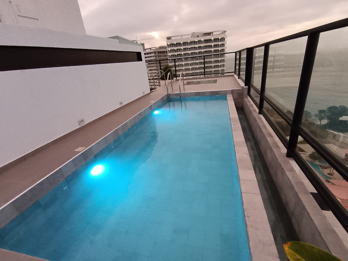 Isilinganiso esingu-4.94 kokungu-5, ukuphawula okungu-16Ifulethi elinezindawo ezingasolwandle (i-pool-jacuzzi)