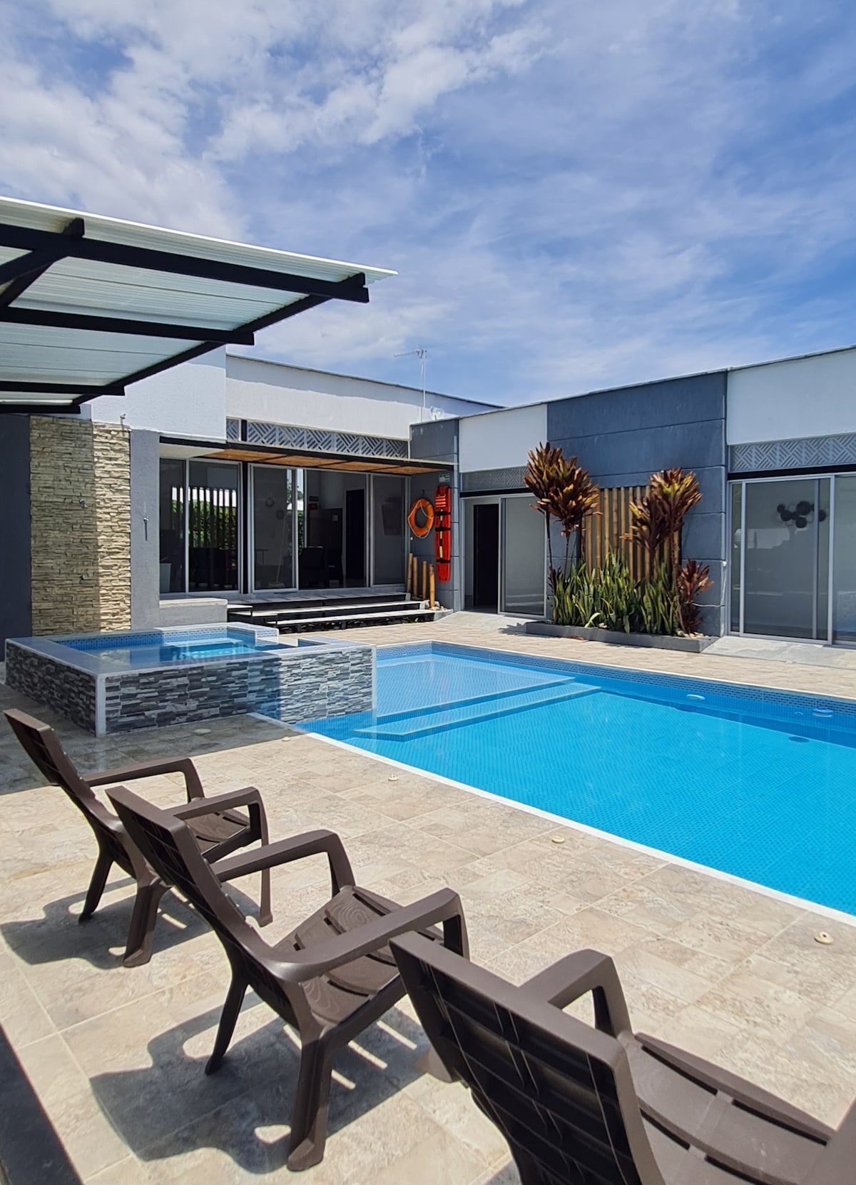Cómoda finca vacacional con piscina, jacuzzi, zona de bbq, amplio salón para celebrar ocasiones especiales, totalmente privada ideal para grupos grandes máximo para 18 huéspedes, que sean amantes al confort y la naturaleza, ubicada en el casco rural de Girardot a tan solo 13 minutos del supermercado Jumbo y 20 minutos de la terminal de transportes. Al hacer la reserva debe indicar el número exacto de huéspedes ya que los precios varían dependiendo el número de invitados.