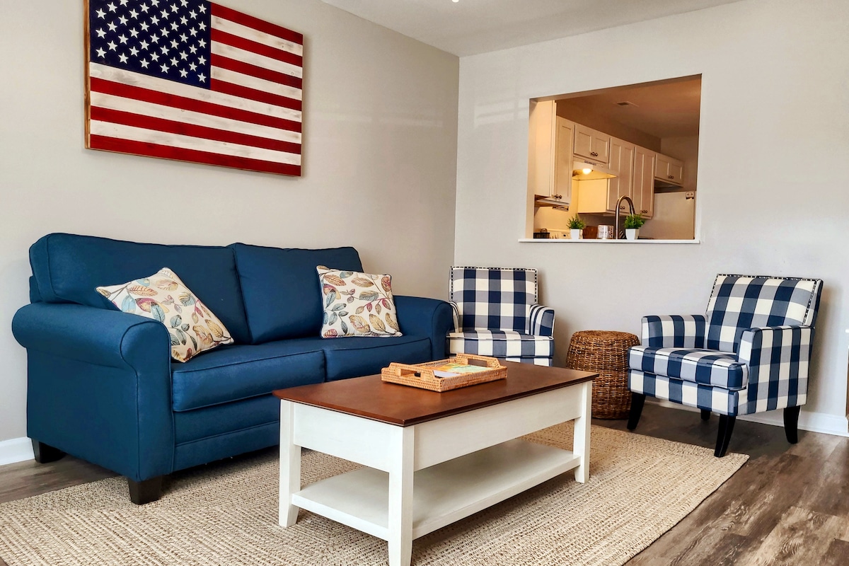 This gorgeous property is nestled in the historic downtown Jacksonville area right in front of Riverwalk Park. Close to Camp Lejeune, Camp Johnson, and New River Air Station. Feel at home in a fully furnished, private neighborhood. Fits up to 6 guests comfortably and up to 8 guest with a tight squeeze as we do offer an air mattress.
