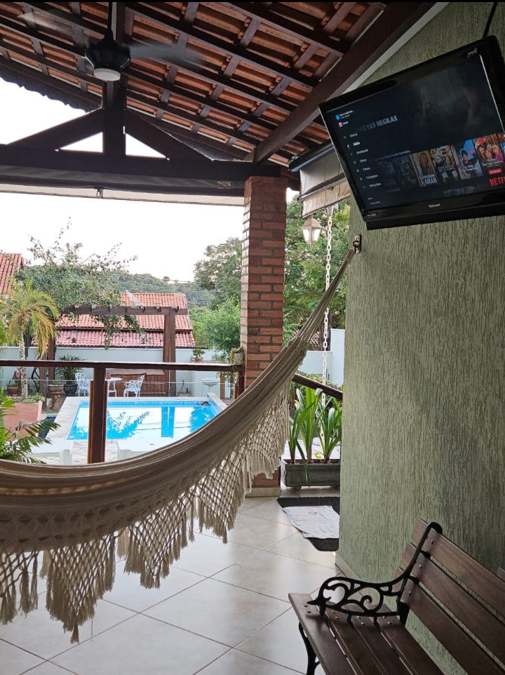 Chácara 1000 metres with a lot of grassy area,the house is a comfortable rustic style with a super relaxing view of the mountains. Indawo ekahle yokuphumula nokululama kwamandla. Uzozwa imisindo yemvelo futhi uthole ukubukwa kwezinyoni...indawo yomlilo ukuze ufudumale ebusika futhi indawo yokubhukuda ivalwe futhi iphathwe nge-ozone ukuze iphole ekushiseni. Indawo yokudla enendawo yokosa nesitofu sezinkuni.