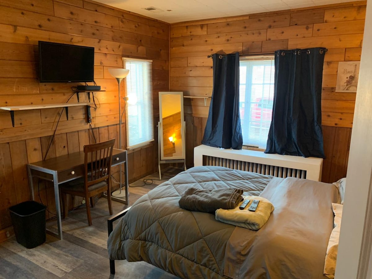 Bonke bamukelekile! Igumbi elithokomele, elizimele ngokuphelele, eligcwele ilanga eRuby Hill. Izici indawo ehleziyo ene-flatatscreen TV namasevisi okustrima, ishawa enamathayili enekhanda le-shower, nekhishi elinama-Keurig, i-microwave, izitsha, nefriji elincane elinamanzi ahlungiwe. Amahenga kanye ne-steamer yesandla iyatholakala endaweni yokugqoka. Indawo yokungena yangasese nebhokisi lesikhiye kuvumela izivakashi ukuba zize zihambe ngendlela eziyithandayo. Ukupaka kuyatholakala emgwaqeni ongenayo. Unobungane ngaphandle kwendlu (akukho ukubhema noma ukushaya ngaphakathi).