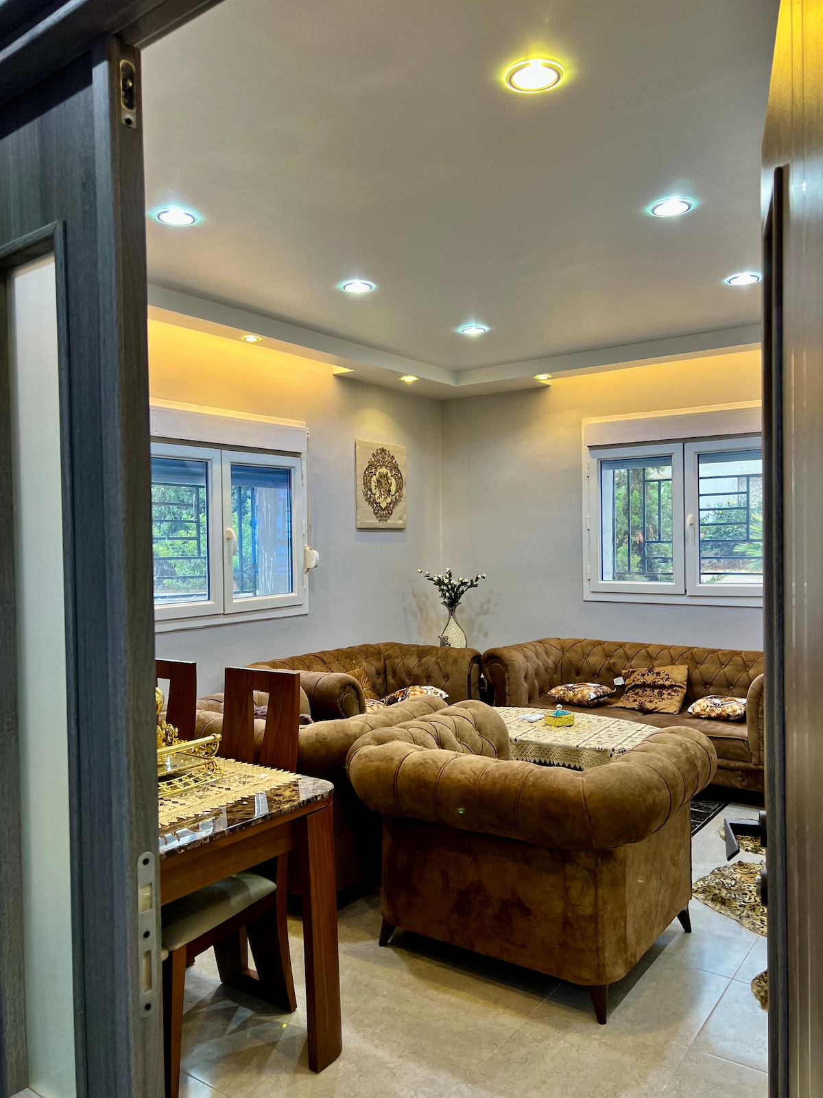 Ikhaya lomndeni elinendawo engu-100m2. 30m2 terrace. Itholakala ngamamitha angu-300 ukusuka olwandle enkabeni yedolobha lase-Ain el Turck e-Oran. Indawo ezungezile enokuthula nendawo enokwethenjelwa. Wonke amasevisi aseduze: Izindawo zokudlela eziningi nezitolo ezinkulu, odokotela, Ikhemisi, i-Butcher, i-Hairdresser. Ikhaya lingahlalisa abantu abangaba ngu-4: Umbhede owodwa + ama-sedaris angu-2 ase-Morocco. Kungenzeka kube nomatilasi ophansi womuntu wesi-5. I-cot yengane uma icelwa. PS: Awekho amaphathi abekezelelwe.