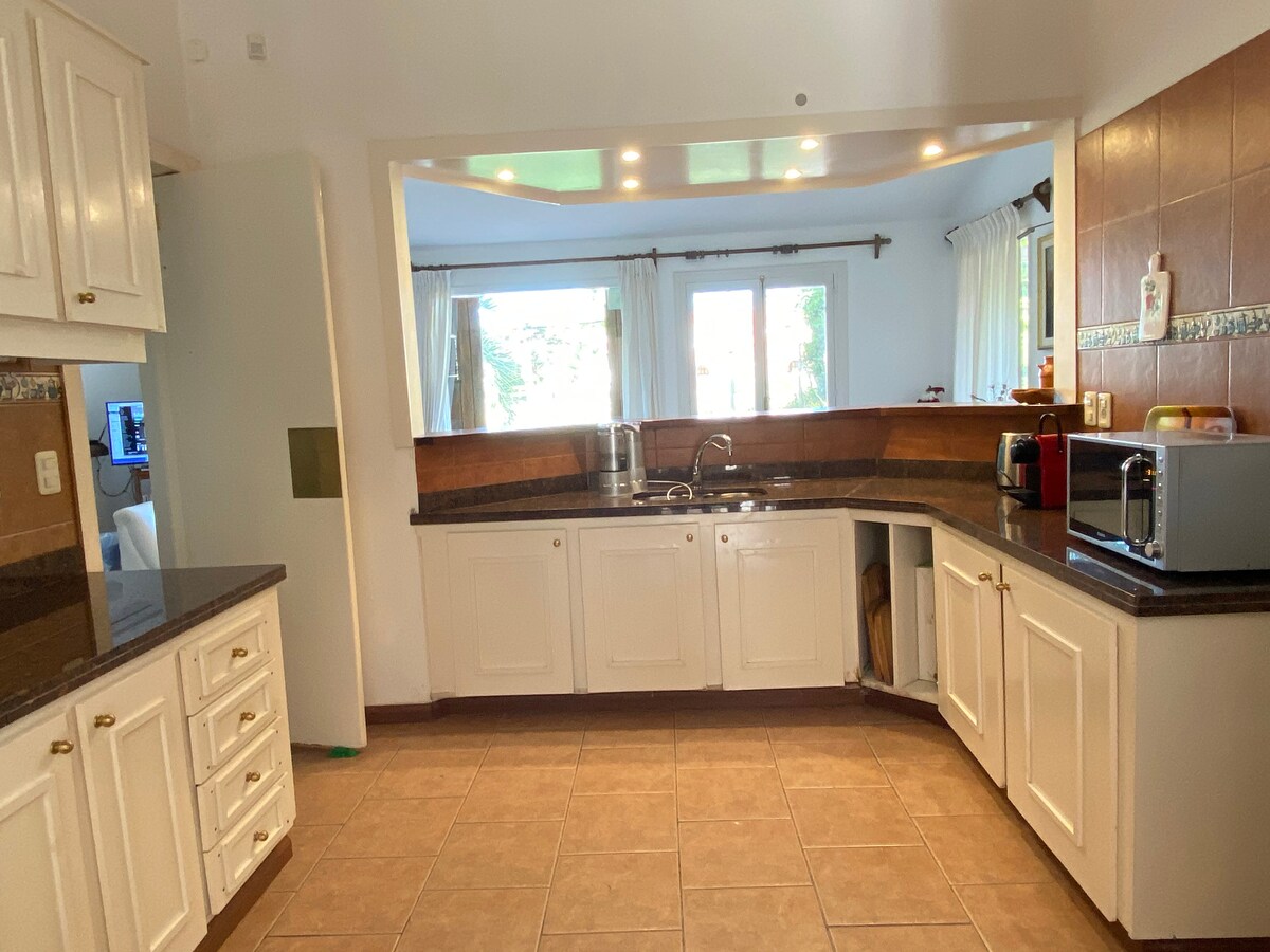 Indlu enkulu (200m2) amabhulokhi angu-2 ukusuka olwandle yabantu abangu-8. Ingadi enhle enamapulangwe engu-1150m2 enokunisela okuzenzakalelayo. Inamakamelo okulala angu-3, amagumbi okugezela angu-3, ikamelo elilodwa, nokuncika okugcwele kwamasevisi. I-grillero enophahla. I-alamu enokuphendula, i-Wifi, i-air conditioning emakamelweni okulala, i-Directv, umshini wokuwasha, umshini wokuwasha izitsha, ifriji enesiqandisi, i-microwave nezinye izinto zikagesi. Izitsha ezigcwele.