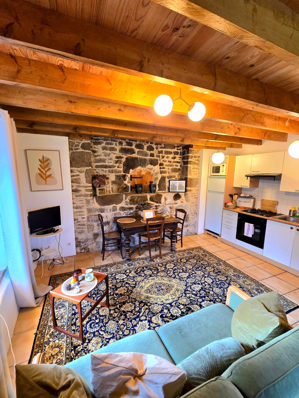 Lesi isakhiwo esidala esingaphandle lapho kwenziwa khona i-cider, yalungiswa ngokuphelele ku-36m2 phansi ngesitezi esintantayo se-mezzanine. Indawo yokuhlala izimele futhi inikeza konke ukunethezeka kwesimanje kwekhaya lamanje elinazo zonke izinto eziwusizo. Ipaki langasese elingaphezu kuka-5000m2 liyatholakala ezihambini ezingaphinde zihambe zibone izimbuzi nezimvu endaweni yazo ebiyelwe.