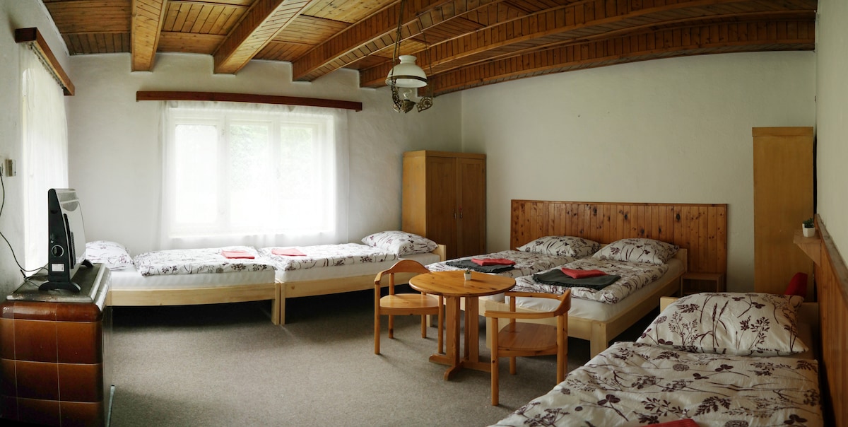 Indawo ehlukile, enendlu yeholidi eyakhiwe ngokhuni edumile emzaneni odumile wase-Slovak Paradise, enendawo ebabazekayo yamagquma azungeze i-challet, yokuphumula njengabavakashi noma abathandi bemvelo nje. Amabili noma imindeni, kokubili nizoba nokuhlangenwe nakho okuthandekayo okuthulile nokuzola komphefumulo lapha, lokhu engingakuthembisa:-)