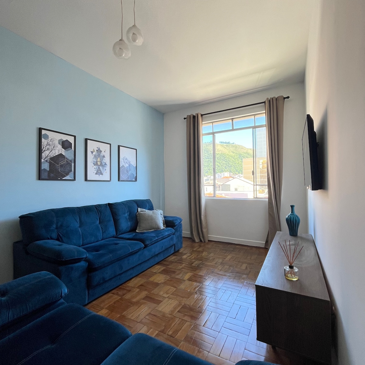 Este apartamento, pertencente à família há mais de 50 anos, agora reformado, apaixona qualquer um de imediato. À frente, a montanha do Cristo Redentor, com bioma predominante da Mata Atlântica; abaixo, as Termas Antônio Carlos, com suas águas que têm o poder de cura, e os imponentes jardins da praça central. Da janela da sala testemunha-se o movimento da cidade. Cafés, restaurantes, padarias, supermercados, estacionamento e comércio variado podem ser frequentados a pé.