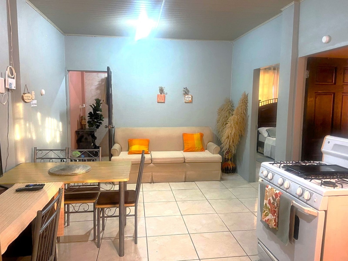 Itholakala endaweni ethulile yokuhlala yase-Couva, lesi situdiyo esihle sesimanje sihlanganisa isitayela sesimanje nesendabuko. Ithokomele futhi iyasebenza, inikeza i-WiFi yamahhala enejubane eliphezulu ne-Netflix. Imizuzu engu-5 kuphela ukusuka e-Point Lisas kanye nohambo olufushane oluya e-Roops Junction. Eduze nemigwaqo emikhulu, ukudla, amakhemisi, izindawo zokudlela, amabhange, nebha, elungele ukunethezeka nokunethezeka.