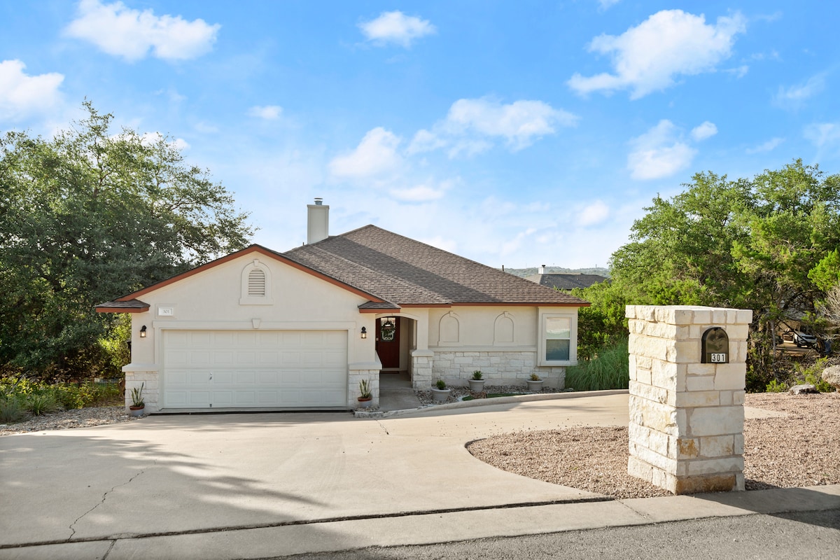 Siyakwamukela e-Lake Travis Hilltop Haven, indawo yakho ekahle kakhulu enkabeni ye-Texas Hill Country. Njengoba ingaphezu kweLake Travis, ikhaya lethu linikeza inhlanganisela ekahle kakhulu yokungcebeleka, ukunethezeka, nokuzijabulisa. Kungakhathaliseki ukuthi uzokuvakasha kwezithandani, iholide lomndeni, noma uhambo nabangane, uzoyithanda indawo yethu eklanywe kahle. Sibheke ngabomvu ukukubungaza! Inqola yegalofu kufanele ikhuliswe futhi ikulungele! Simane sicele ukuthi ugcwalise igesi, ngaphambi kokuba uhambe. Jabulela 🎉
