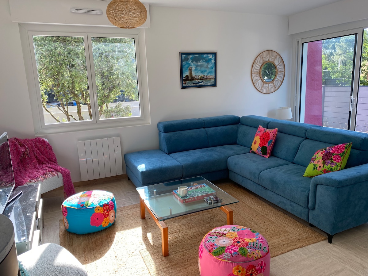 Agréable studio en rez-de-chaussée avec terrasse et vue sur le lac. Tous commerces à proximité : laverie, supérette, boulangerie, location vélo, … Restaurants, vente à emporter, snacking. Une plage de sable du Veillon accessible à pied par la corniche (1,5 km), en voiture (2,2 km), en vélo en empruntant les pistes cyclables du littoral, une navette gratuite est disponible juillet août du Accès gratuit à l’espace aquatique piscines chauffées avec une pataugeoire et des toboggans.