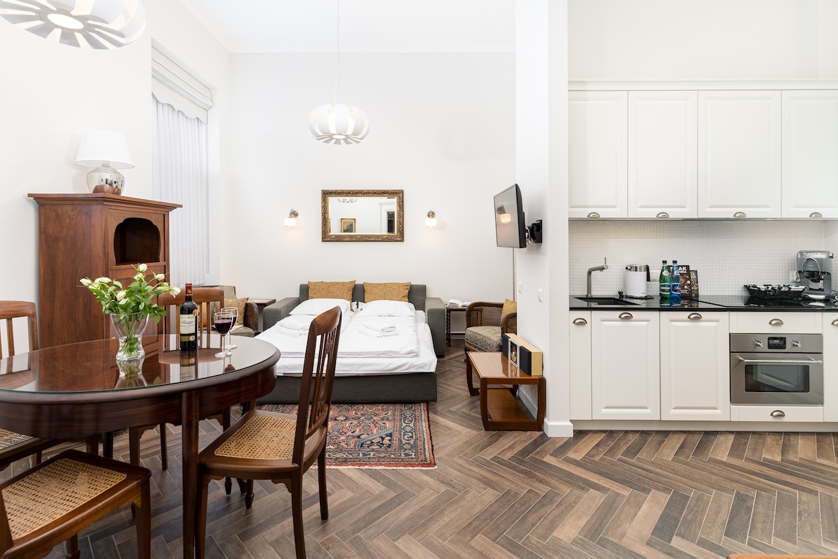 Ngena ekunethezekeni E-NOLA 1-ifulethi elihle elinekamelo elilodwa emizuzwini embalwa ukusuka e-Kraków's Main Square. Le ndawo eklanywe kahle inekhishi elinakho konke, i-air conditioning, i-Wi-Fi esheshayo, nezinto ezisesitayeleni kuyo yonke indawo. Jabulela ikhofi lasekuseni etafuleni lokudlela noma uphumule ngengilazi yewayini ngemva kokuhlola i-Wawel noma i-Planty Park. Ilungele imibhangqwana noma izihambi ezihamba zodwa ezifuna ukunethezeka nokuthula enkabeni yedolobha.