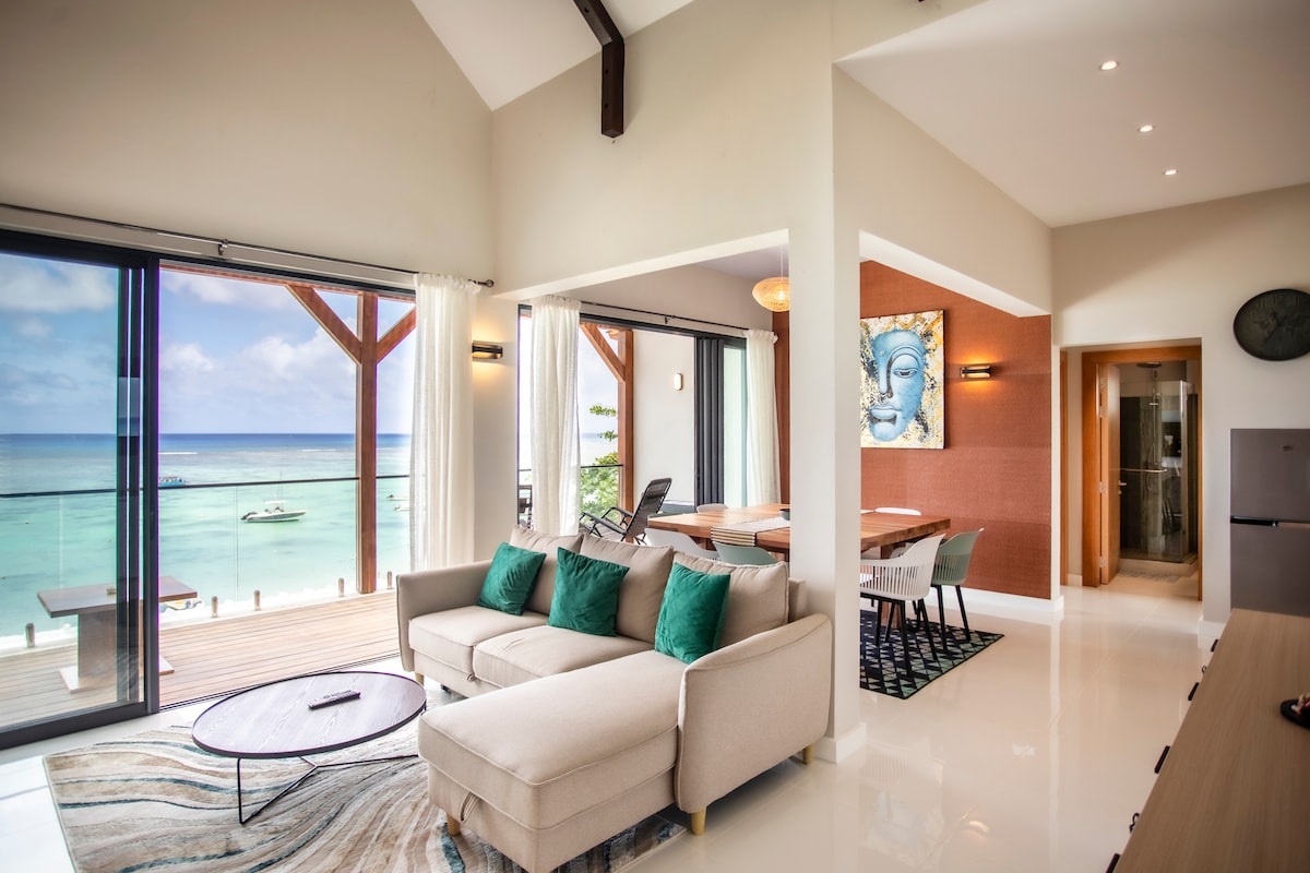 Ukunikeza umbono omuhle nesithombe esiphelele se-lagoon, ibhishi nesiqhingi saseNingizimu-mpumalanga ye-Mauritius, leli fulethi likanokusho elibheke ibhishi liyamangalisa ngeholide elihle nomndeni noma abangane. Ifenisha yesimanje nokuhlobisa, enamakamelo okulala angu-3 antofontofo anamagumbi okugezela angasese, indawo yokuhlala evulekile. Ukunikeza izivakashi ingadi yangasese lapho zingaphumula khona futhi zijabulele ubusuku obuthule ukujabulela i-barbecue emnandi, ngemva kokuchitha usuku zizungeze indawo yokubhukuda ehlanganyelwayo.