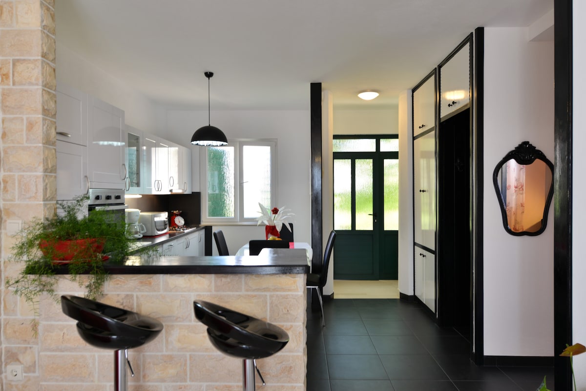 Ifulethi elisha le-Loft eliqukethe ikhishi elikhulu elinendawo yokudlela, ikamelo lokulala elibili, indlu yokugezela ezimbili, igumbi lokuwasha kanye nebhalikhoni lapho ungajabulela khona ukubuka okuhle kolwandle ne-Pakleni Islands. Sinendawo yokupaka yamahhala etholakalayo phambi kwendlu. Indlu isendaweni ethulile,kodwa iseduze kakhulu nawo wonke amasevisi.Center yimizuzu engu-10 ukusuka endlini kanye nemizuzu engu-5 kuya ebhishi lokuqala,izitolo ezinkulu nezindawo zokudlela.