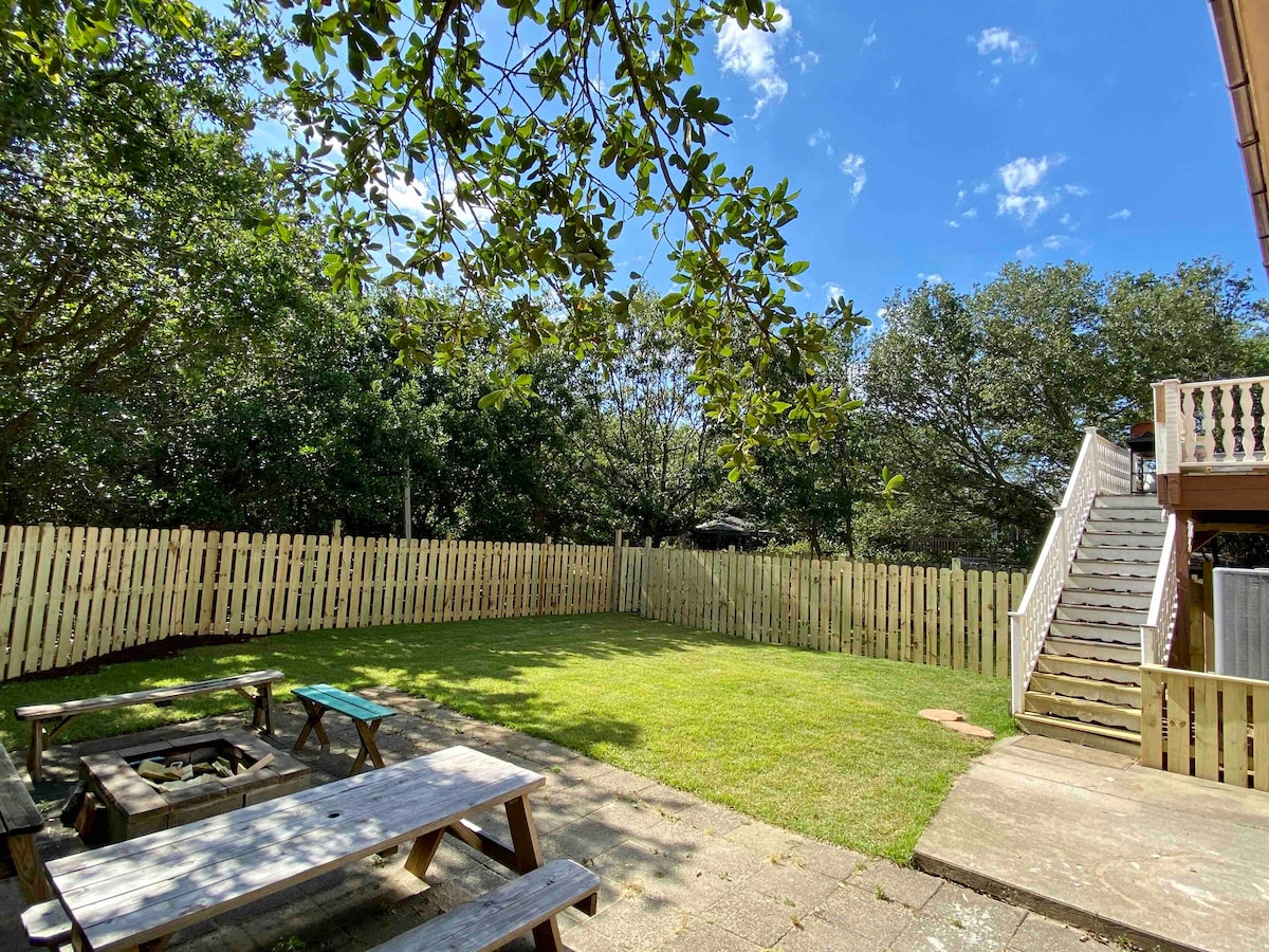 Ifulethi lethu lisesitezi sokuqala sendlu yethu, okungenye yamakhaya asebenza nge-Solar kuphela e-Outer Banks! Uhamba nje imizuzu engu-5 ukuya ebhishi nokugibela ibhayisikili elifushane noma uhamba ngemoto ukuya emsindweni, sinendawo ekahle kakhulu eseduze nakho konke. Indawo yethu ihlanganisa ukusetshenziswa kwe-shower yethu yangaphandle namapasi okupaka ebhishi. Sinegceke elihle lokuphumula, ukugeza ilanga noma ukudlala nezinja. Woza uhlole "Umhume" wethu ngamagagasi!