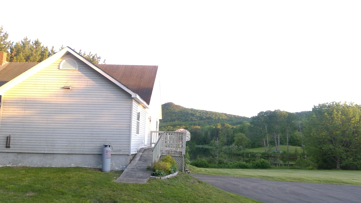 Indlu yethu eyakhiwe ngamapulangwe ilungiswe emuva kwe-Mars Hill Mountain ne-Big Rock Ski Resort iqhele ngamakhilomitha ambalwa. Ukubukwa kwe-Canada. Ifanele imindeni, abangane, abazingeli, abashushuluza eqhweni, ama-snowmobilers, nokuningi! Indawo yethu iyindawo yokuqala yokuphuma kwelanga! Ama-acre angu-27 avumela izilwane zakho ezifuywayo nezingane ukuba zibe nendawo enkulu yokugijima futhi ujabulele imvelo. Leli yikhaya elikude nekhaya!