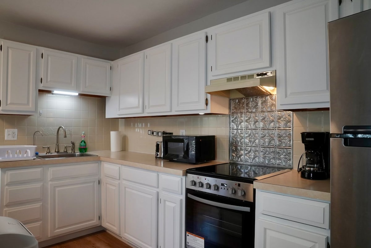 Indlu enophahla oluluhlaza. Yinhle ngempela, iyathandeka ngokuphelele. Azikho izindleko zokuhlanza ezifihliwe. Uzobe uqashisa lonke ifulethi eliphezulu. Indawo yokupaka ephrayivethi yamahhala yezimoto ezingu-3+, i-Wi-Fi yamahhala (i-Verizon Fios), ukuzingenela, amanzi amahle, ikhofi netiye. Umatilasi womoya owengeziwe utholakala ngesicelo kuphela. Ikhaya elikude nasekhaya, sicela i-A+ neighborhood Max people 5. Noma yimiphi imibuzo emikhulu noma emincane sicela unganqikazi ukubuza Siyabonga RE.00385-STR