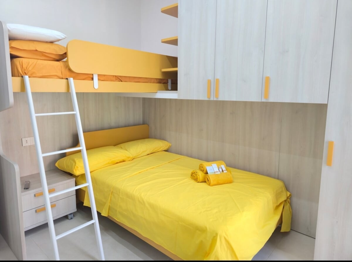 Igumbi lase-Ulivo, elilungiswe ngo-2020, lihlukile kulo lonke ifulethi. Inakho konke ukunethezeka: i-air conditioning, ama-radiator, umbhede omkhulu onamadrowa, ideski, i-wardrobe evulekile, ibhentshi lemithwalo, i-TV engu-32", isibuko, igumbi lokugezela eliphrayivethi eline-shower enkulu, i-hairdryer, i-hair straightener, umshini wekhofi, iketela letiye netiye lamakhambi, ithala lesidlo sasekuseni sangaphandle, ifriji elincane eligcwele. Igumbi elinesikhiye.
