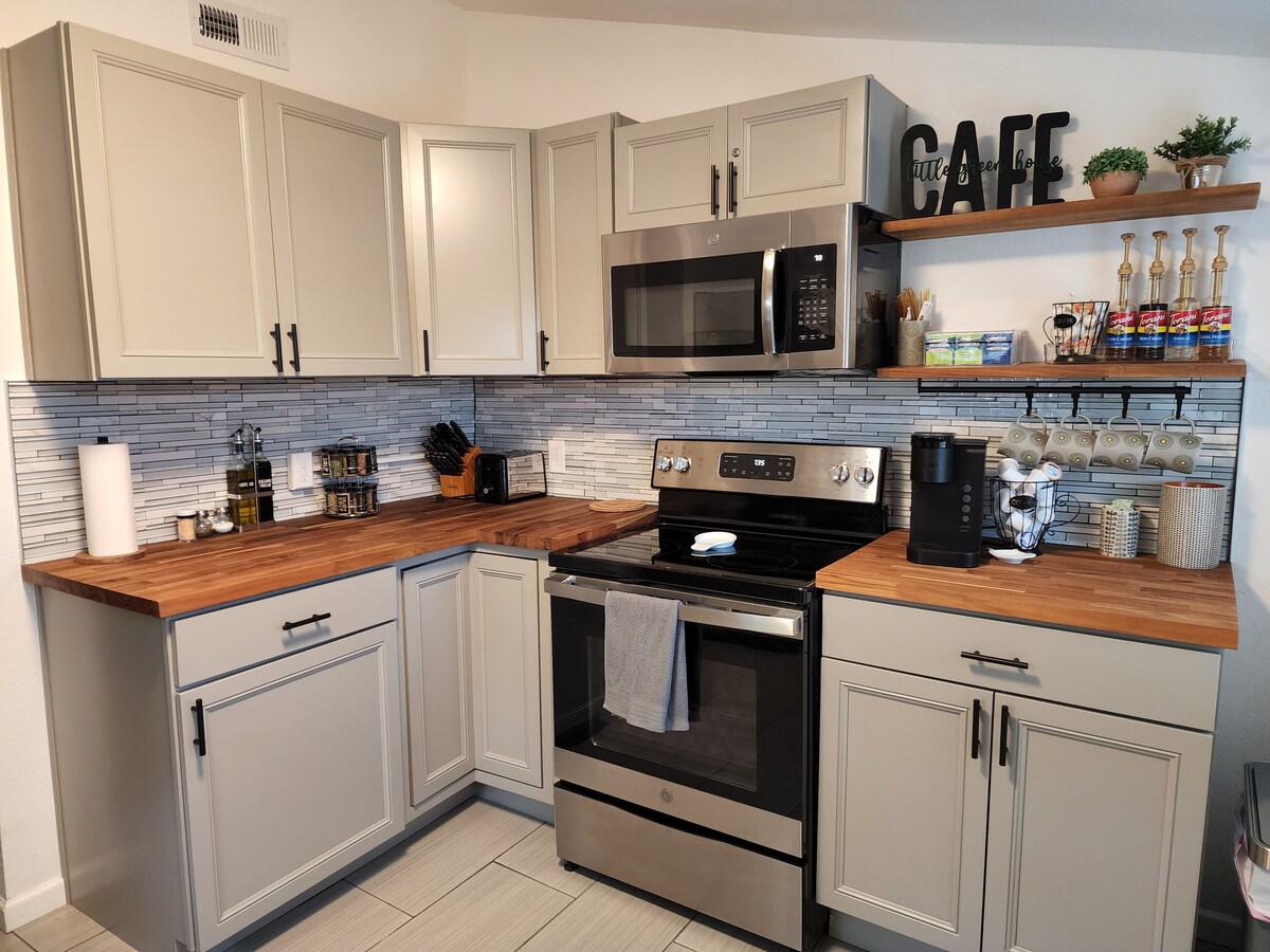 Ilungiswe kahle umbhede ongu-3 2 wokugeza 1100 sq/ft ekhaya eliphakathi ne-Pueblo. I-Little Green House iqhele ngamabhlogo angu-4 e-I25, amabhlogo angu-12 avela e-Riverwalk, e-Union Ave, naseHholo leSikhumbuzo, kanye namabhlogo angu-2 avela e-Mineral Palace Park. Izilwane ezifuywayo ezinobungane, ezinobungane bezingane, umshini wokuwasha/wokomisa weyunithi, ishaja ye-EV, nabanikazi bahlala endaweni efanayo ngakho ngokuvamile batholakala kunoma yiziphi izinkinga ezingase zivele. Azikho izindleko ezengeziwe zezivakashi ezengeziwe, azikho izindleko ezengeziwe zezilwane ezifuywayo, futhi azikho iziqondiso ezikhethekile noma imisebenzi yokuphuma.