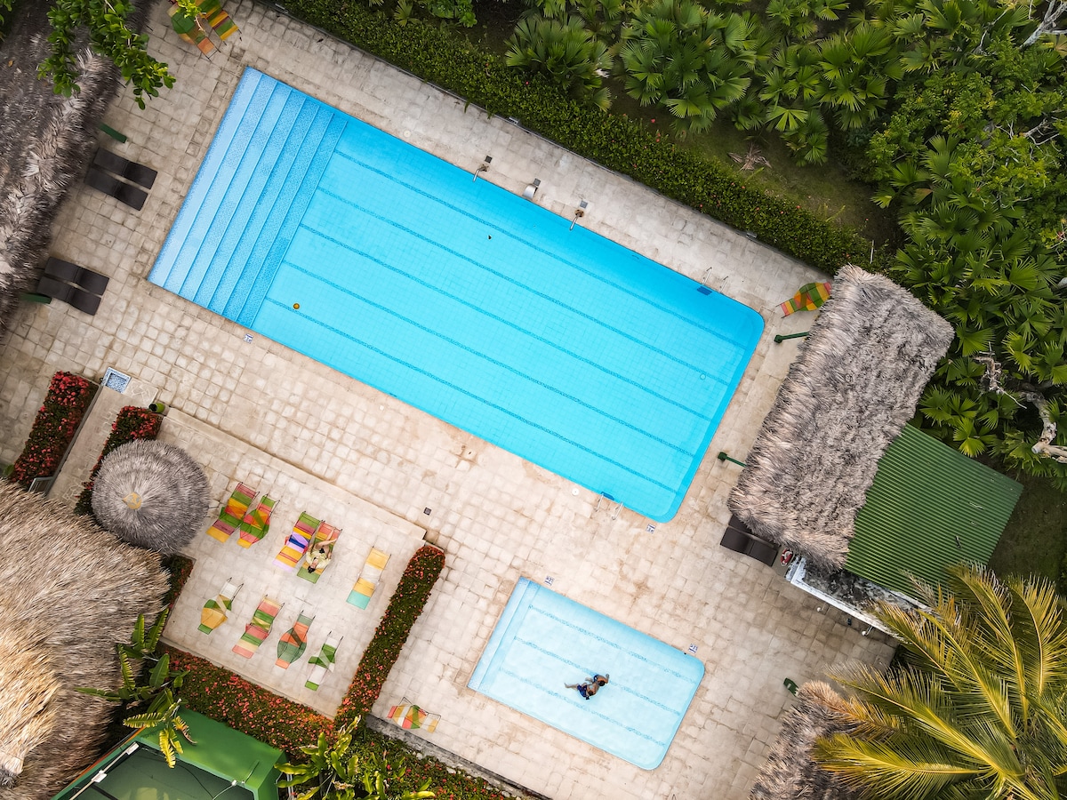 Lonke iqembu lizonethezeka kule ndawo evulekile nehlukile. Zizwele ukunethezeka kwezinto ezinhle kule ndlu yobukhosi eyi-10-hectare eduze ne-Hacienda Nápoles. 🌅Jabulela indawo yokubhukuda, i-jacuzzi, indawo yomdlalo, ibha, i-A/C ephelele, amakamelo angu-7 amakhulu, nekhishi elihle lokudla okumnandi emibuthanweni engasoze yalibaleka. Indawo engaphezu kuka-2,000 m² enezindawo zezilwane zasendle, indawo yokudlela yangaphandle yabantu abangu-20+, kanye nephrayivesi ephelele ezungezwe imvelo evulekile I-resort 🦌yakho ekhethekile e-Doradal ilindile. 🌴🔥