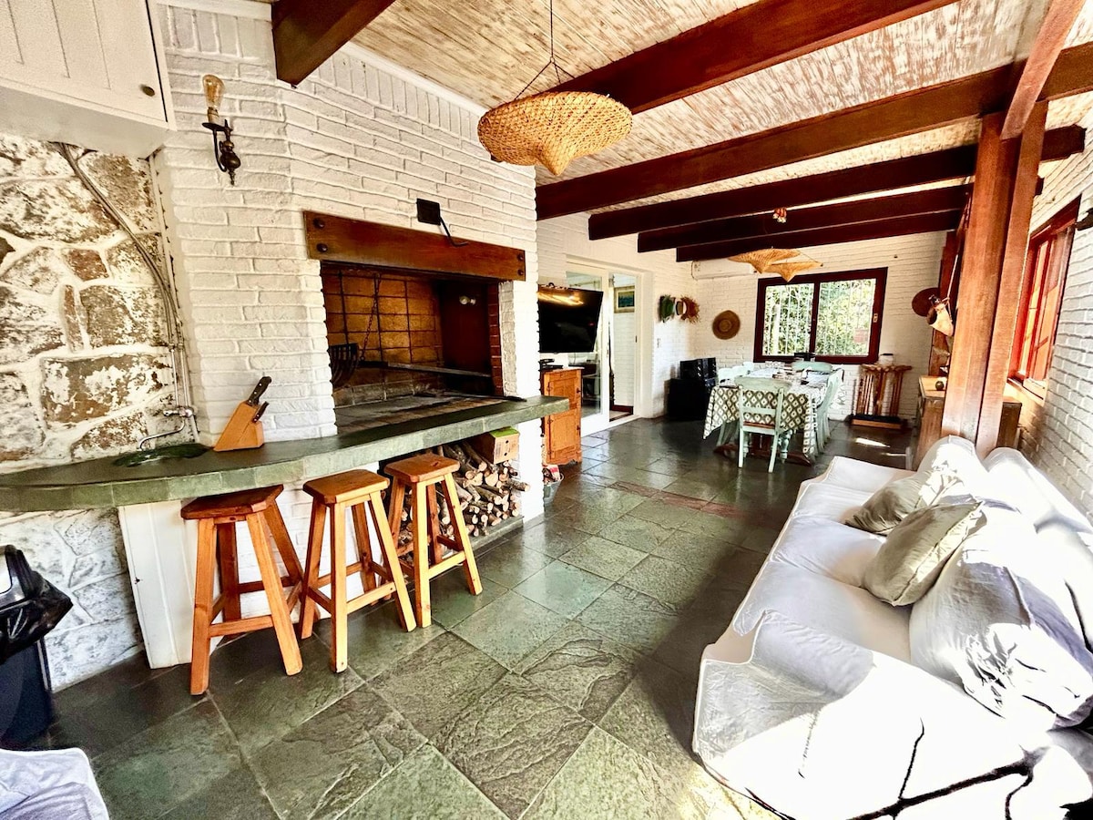 Indlu enkulu (200m2) amabhulokhi angu-2 ukusuka olwandle yabantu abangu-8. Ingadi enhle enamapulangwe engu-1150m2 enokunisela okuzenzakalelayo. Inamakamelo okulala angu-3, amagumbi okugezela angu-3, ikamelo elilodwa, nokuncika okugcwele kwamasevisi. I-grillero enophahla. I-alamu enokuphendula, i-Wifi, i-air conditioning emakamelweni okulala, i-Directv, umshini wokuwasha, umshini wokuwasha izitsha, ifriji enesiqandisi, i-microwave nezinye izinto zikagesi. Izitsha ezigcwele.