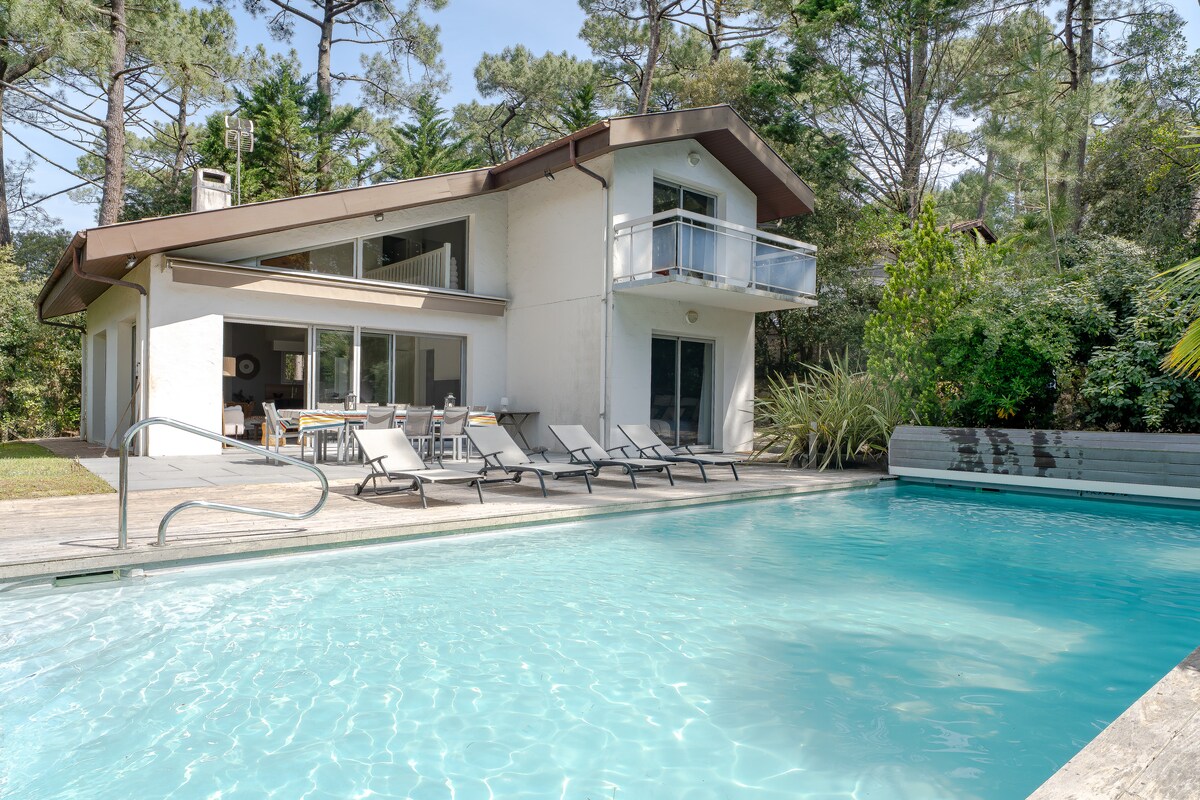Location de notre jolie Villa en bois sur les hauteurs du Pyla sur mer, dans un quartier calme & arboré. Tout juste rénovée par un architecte, la maison propose tout le confort nécessaire : -5 chambres -2 salles de bain -grande pièce de vie avec cuisine équipée, grand séjour & salle a manger -buanderie -terrasse, jardin & petite piscine (sécurisée) A 5 min a pieds de la plage. Vue bassin depuis la terrasse pour profiter des couchers de soleil. Idéale pour des vacances en famille ou entre amis
