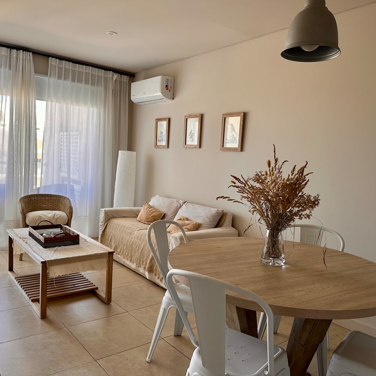 A design retreat between forest and sea. Located in Bahía de los Vientos, within the quiet, tree-lined setting of Quequén Chico, it blends nature, privacy and refined aesthetics just steps from the beach. Bright and spacious, it invites you to slow down and unwind. Ideal for those who value good taste, silence and a distinctive coastal experience. A shared pool, fully equipped kitchen and private parking complete a comfortable stay in a privileged natural setting.
