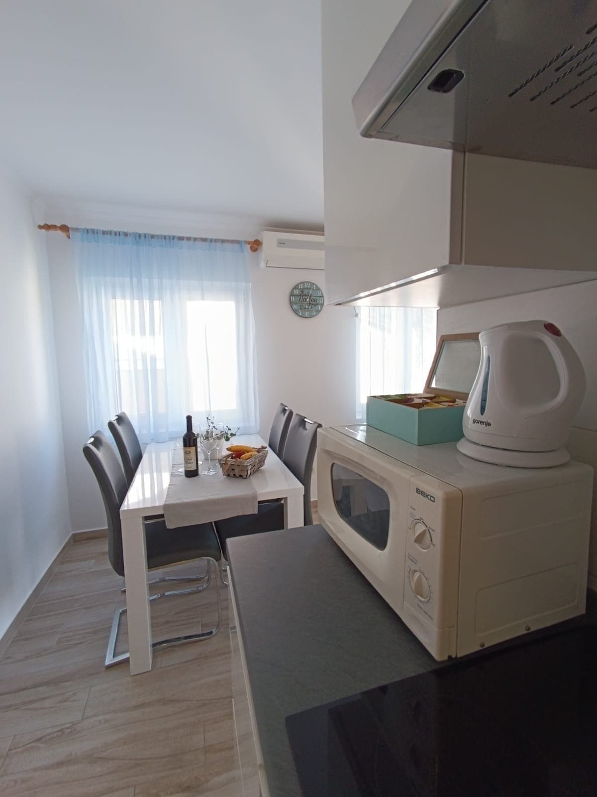 Siyakwamukela e-Apartment Petra futhi sithemba ukuthi uzoba nokokuzithokozisa okuhle lapha. Indawo enkulu enamagumbi angu-3 okulala, amagumbi angu-2 okugezela, ikhishi negumbi lokuphumula. Ifulethi linebhalkhoni enhle enendawo yokubuka ulwandle lapho ungakhululeka khona ngeziphuzo futhi ujabule. Indawo yokupaka eyimfihlo ingaphambi kwendlu futhi ihlale itholakala futhi ivikelekile. Njengoba wazi, isidlo sasekuseni sifakiwe futhi sizonikezwa endaweni yakho yokuhlala. Njengoba sinolwazi olude ekuqasheni, ngiyaqiniseka ukuthi uzokwaneliseka uma uhlala nathi.