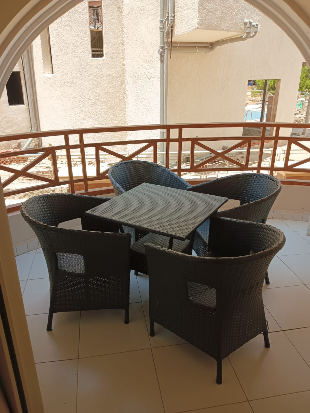 Escape to La Vista 1! Ground-floor chalet with a private garden, direct sea view, and pool steps away. 2 spacious bedrooms, 1 bathroom, full AC, LED TV with OSN & BEIN, fully equipped kitchen, and outdoor grill. Immaculately clean—refund if anything isn’t perfect. Perfect for families.