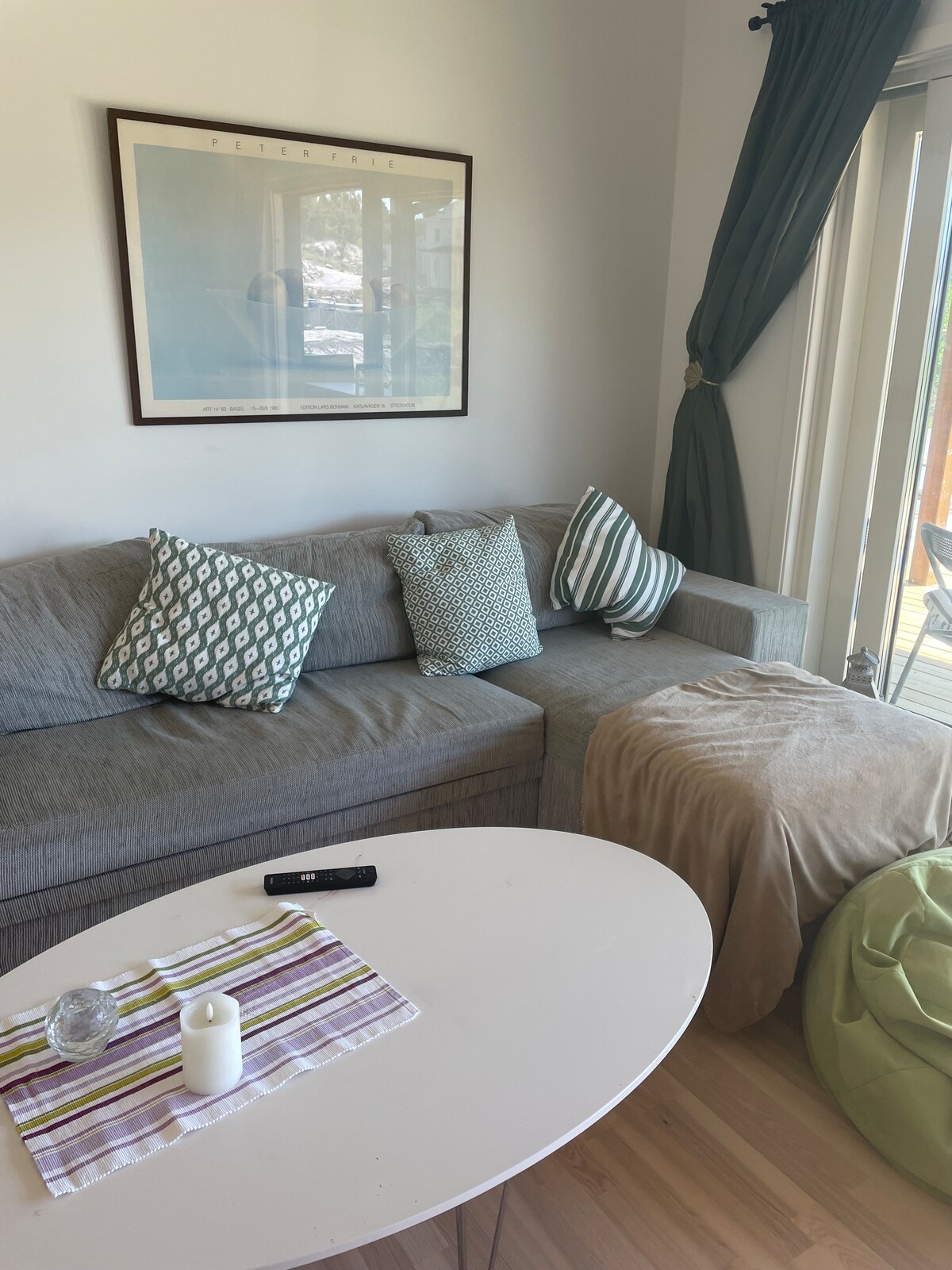 Ikhishi negumbi lokuphumula elinombhede wosuku lwe-155 cm nendawo yokubuka ulwandle. Igumbi lokulala elikhulu elinombhede olala abantu ababili ongu-160 cm. Ikhishi elinehhavini/i-induction hob, ifriji/ifriji, izitsha ne-microwave. Igumbi lokugezela elineshawa, umshini wokuwasha nomshini wokomisa. Uvulandi novulande omkhulu onotshani. Ukupaka ngaphandle. Imizuzu engu-10 uhamba uye emanzini ngamabhishi, amagquma nama-marina, ihlathi umzuzu we-1 ngemuva kwendlu. Amaminithi angu-15 ukushayela enkabeni, imizuzu engu-10 ukuya e-Nordby shopping. Imizuzu engu-20 eya eKoster ngesikebhe. Indawo ethulile.