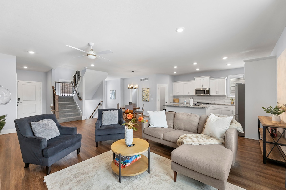🏟️ Indawo Eyinhloko – imizuzu engu-8 ukuya e-Arrowhead & Kauffman Stadium. Leli khaya elisendaweni emaphakathi futhi eliqhele ngemizuzu embalwa emgwaqweni omkhulu, liqhele ngemizuzu engu-17 ukusuka enkabeni yedolobha laseKansas City. Uzothola nezindawo zokudlela eziningi nezitolo eziseduze. Siyaziqhenya ngokunikeza ukuhlala okuhlanzekile, okunethezekile kuzo zonke izivakashi zethu. Ikhaya linekhishi elenziwe ngokwezifiso elinesitofu esingu-48 intshi, ama-oveni amabili, nendawo yokosa. Jabulela igceke elibiyelwe eline-grill yamagesi yama-BBQ asemini, bese uyaziphumulela kusihlwa uzungeze umlilo