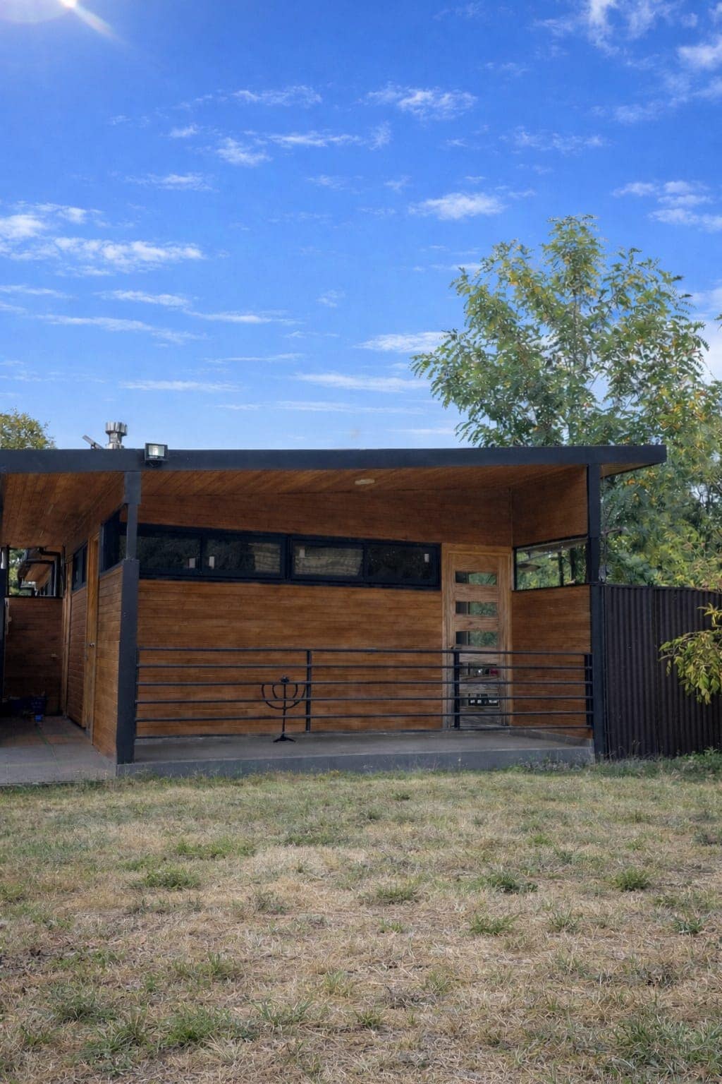 Indlu eyakhiwe ngamapulangwe enhle enefenisha i-las Trancas