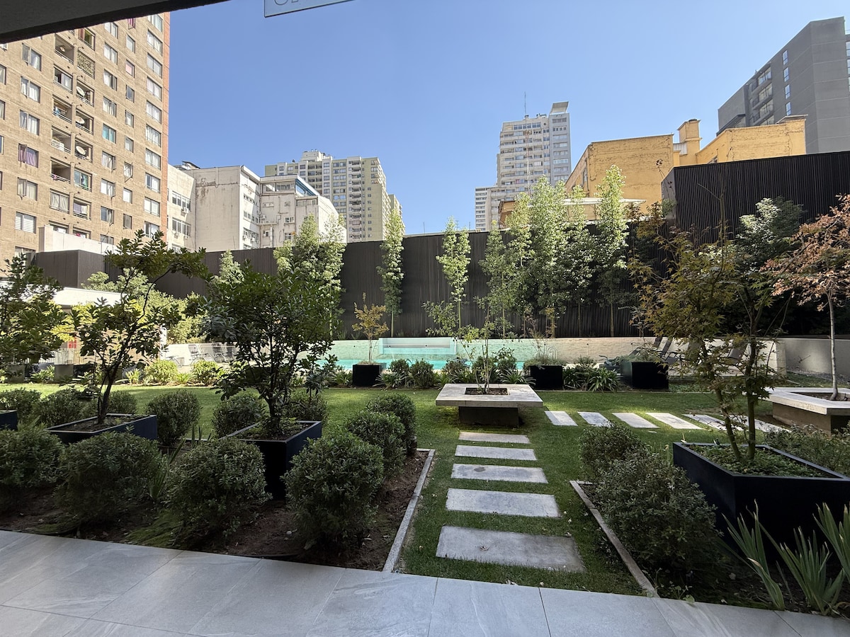 Ifulethi elihle elinazo zonke izinto ezidingekayo zokuhlala kwakho e-Santiago. Inakho konke, iyayintsha, ithokomele, futhi inendawo yokudlela yokunethezeka, indawo yokusebenzela, indawo yokosa, nengadi yasedolobheni. Le ndawo enhle, ethulile iseduze nendawo yokuhamba ngezinyawo yemetro, imitholampilo, amanyuvesi, izindawo zokudlela, amasupamakethe, amakhemisi, izitolo, nezindawo ezikhangayo zasendaweni. Kungakhathaliseki ukuthi ulapha ngebhizinisi noma ubumnandi, uzothola konke okudingayo ezandleni zakho.