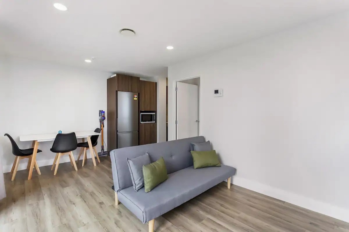 Itholakala enkabeni ye-Albany. Ibanga elifushane lokuhamba ngezinyawo ukuya cishe kuzo zonke izindawo, kuhlanganise kodwa kungagcini e-Westfield Shopping Centre, izitobhu zamabhasi, izindawo zokudlela njll. Iphrayivethi, inelanga, inefenisha ephelele, amakamelo okulala angu-2 anombhede nekhabethe le-Queen Size, amafasitela anamakhethini nama-blind asongwayo. Azikho izindawo zokupheka, kodwa zinekhishi eline-microwave, i-toaster, ifriji.