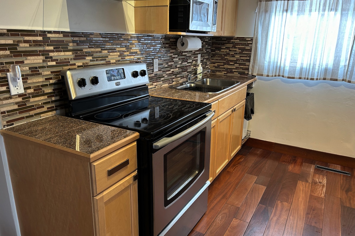 Jabulela ukunethezeka nokunethezeka okunikezwa yileli gumbi elingaphansi kwekamelo elithokomele endaweni ethulile ye-Green. Yenza izinkumbulo ezithile kule villa eyingqayizivele nelungele umndeni. Kuyimizuzu engu-5 ngemoto ukusuka e-Costco nemizuzu engu-8 ngemoto ukusuka e-Walmart & Superstore. Le ndawo ehlanzeke kakhulu inombhede othokomele ongusayizi wendlovukazi nendawo yokupaka yamahhala. Ine-inthanethi enejubane eliphezulu engu-325 Mbps Wifi, i-smart TV engu-40'ehlanganisa ukufinyelela kwevidiyo eyinhloko ne-netflix. Ikhishi elincane linezinto ezibalulekile ezifana nohhavini we-microwave, ifriji, ijagi yamanzi ashisayo, umshini wokwenza ikhofi, i-toaster.